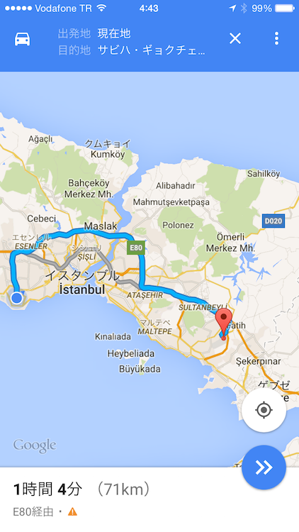I met up with the driver safely, though there were some misunderstandings, and I occupied a 6-seater van by myself, and we headed for Sabiha Gökçın Airport for about an hour in the dark before dawn, seeing the old city of Istanbul in the distance. Since it was early in the morning, it took about 50 minutes to arrive.