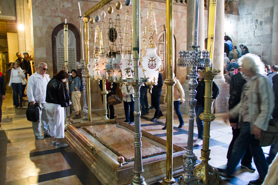 ここはこの日の朝最初に訪れたところ(前回の日記)。午後に再び戻ってきた時には多くの人で行列になっていました。内部は先にも書きましたが2部屋構成となっており、最初の部屋は礼拝堂(待機する場所)で2部屋目にイエスが眠る石棺が納められている部屋です。