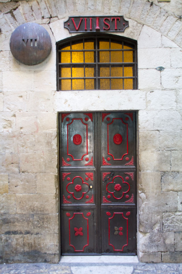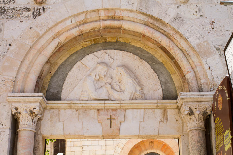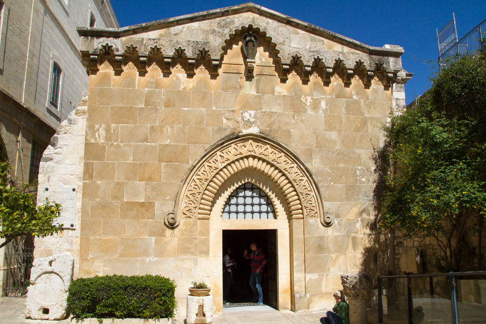 It is here that Jesus is made to bear the cross. Today, there are the Church of the Flogging and the Church of the Conviction on this spot. Both of them were built during the Crusades. The photo shows the Church of the Conviction.