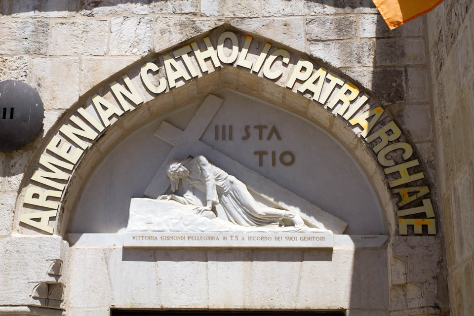 ピラト邸から200m程度進み左に折れる道で、イエスは最初に十字架の重みで躓いてしまった、その場所が第3留です。このあたりの一角はアルメニア使徒教会が管理しているとのことです。