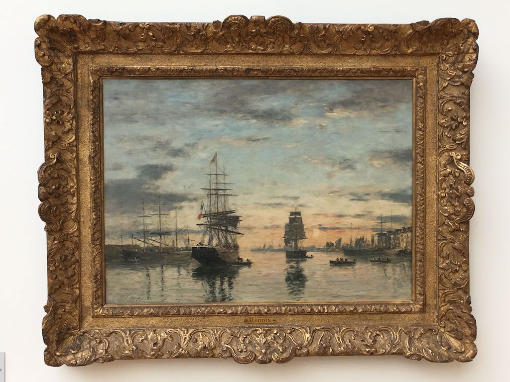 Many of Boudin’s paintings depict the harbor, coastline, and beaches of his hometown, Le Havre, and I got the impression that the colors were mostly bright and soft light blue. I think this may be the first time I’ve seen them slowly.