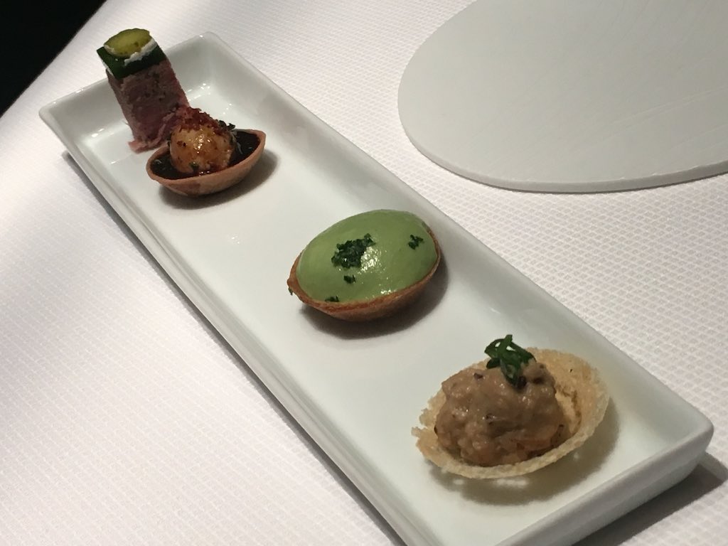 こちらのレストランのシェフは、ウェブサイトを見た限りの情報ですが、伝統的なブルゴーニュ料理を継承しつつモダンな技術も反映させているところが評判だということのようです。ということで、[highlight]「ブルゴーニュ風のおまかせコース(Ménu au fil de la Bourgogne)」[/highlight]を選んでみました。