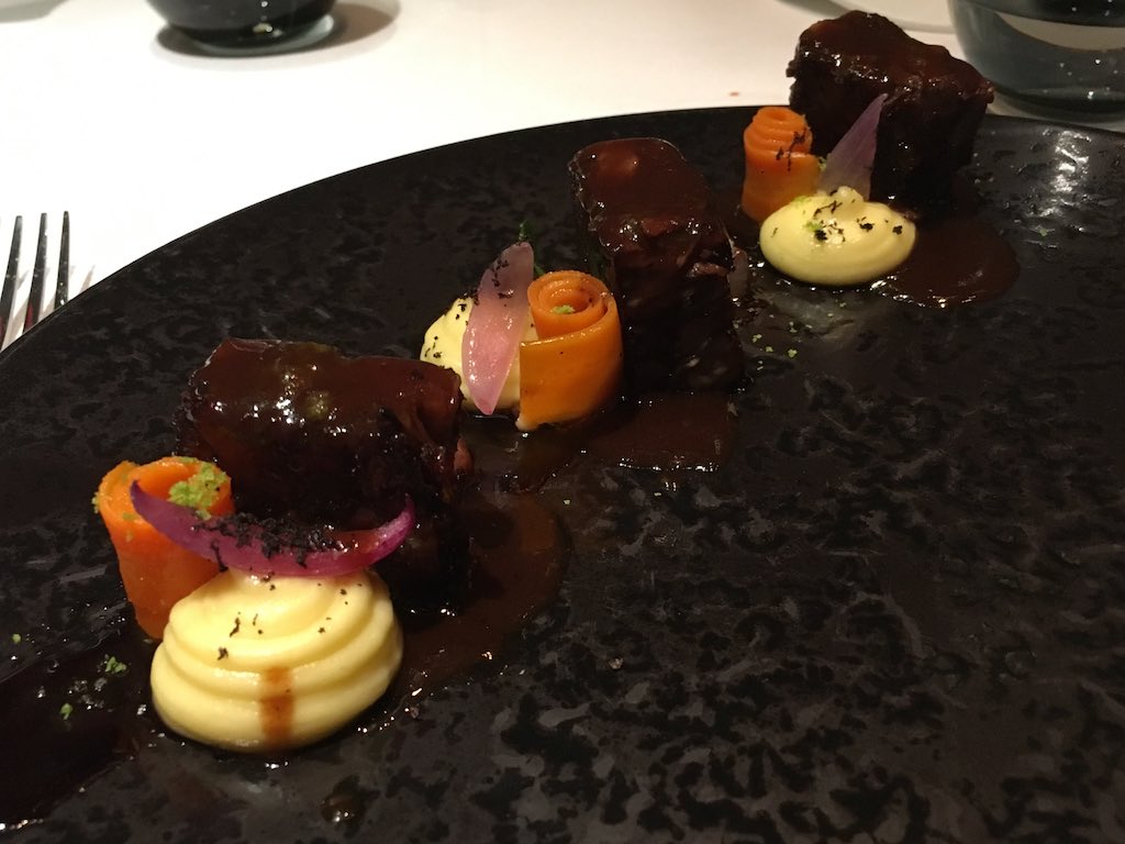 そしていよいよメインの登場。[highlight]「ブフ・ブルギニョン」[/highlight]、こんな上品なブフ・ブルギニョンは見たことないです。お皿の上の方にちょっとしかないように見えますが、見た目以上にボリュームがありました。