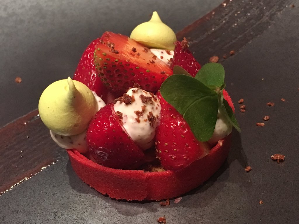 これだけでも十分なのになんとデセールは2品も出てきました。はじめはこちらの[highlight]「いちごのタルト」[/highlight]。