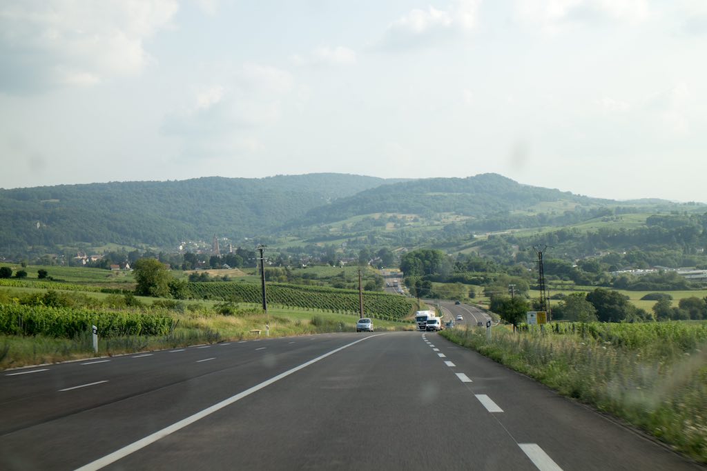 The roads are very beautiful. In France, even the local roads are well paved and easy to drive.