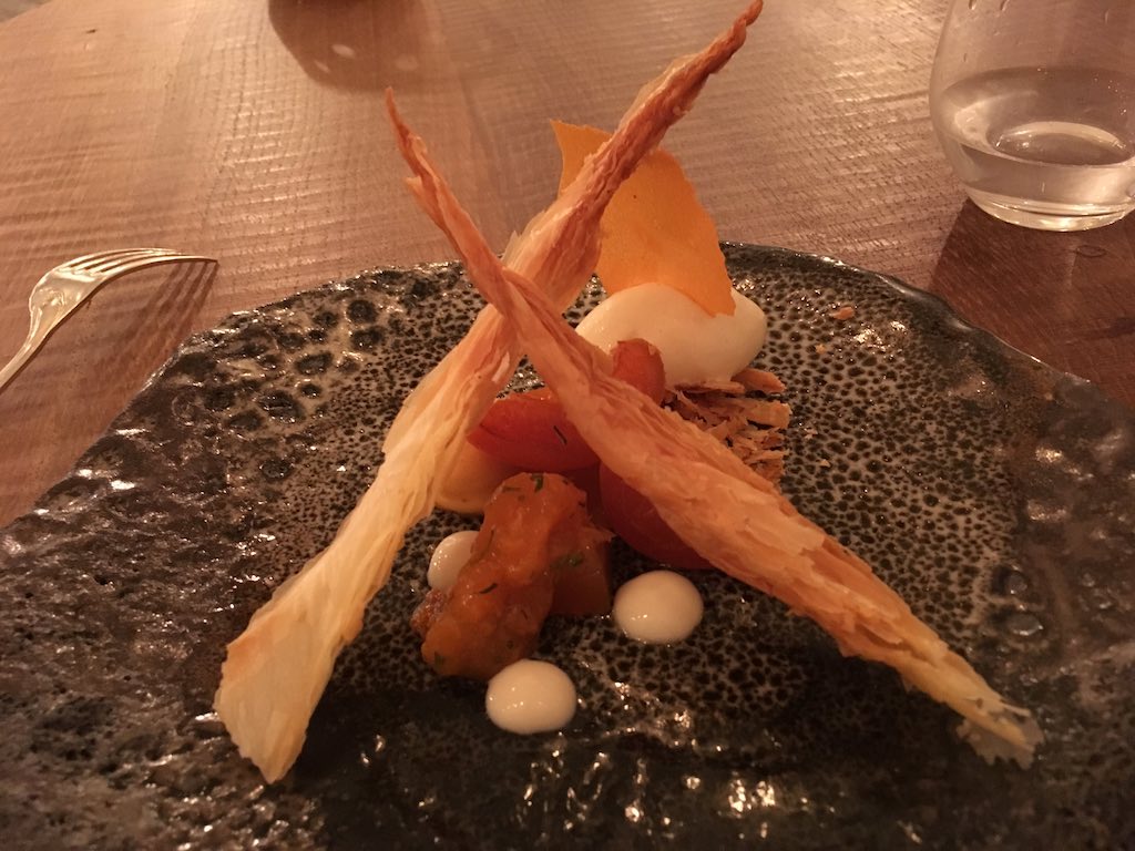It translates to “Kearsigh crab, seasoned with cardamom (a type of spice), served with ripe lemon and emulsified scallop sauce”. To be honest, I was surprised to see the crab in the middle of the mountains, but it didn’t smell at all, and the fresh lemon aroma and taste were in good harmony.
