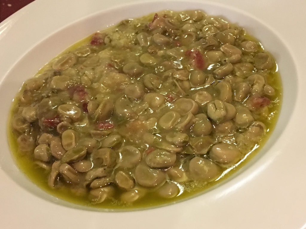 The next dish was Habas txikis con jamon (fried mini beans and bacon), which was very tasty.