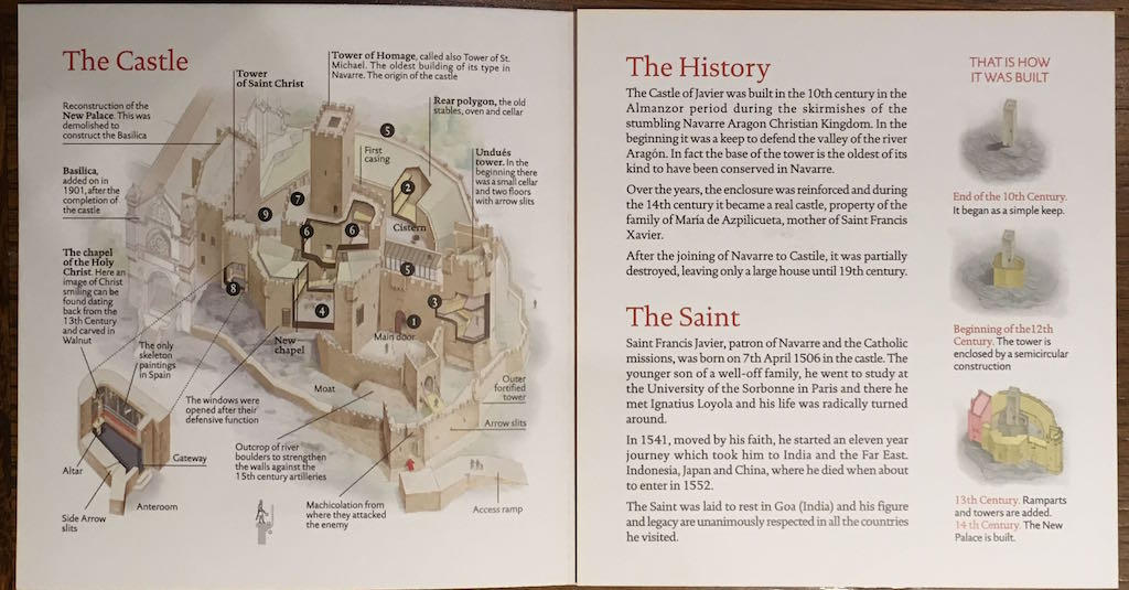 According to this pamphlet, the original castle was built at the end of the 10th century with a tower in the center, which is still standing today, and then it was enlarged repeatedly until it took its present shape around the 14th century. It is said that this was the time when the castle was owned by Xavier’s mother. The castle was abandoned for a long time until the 19th century.