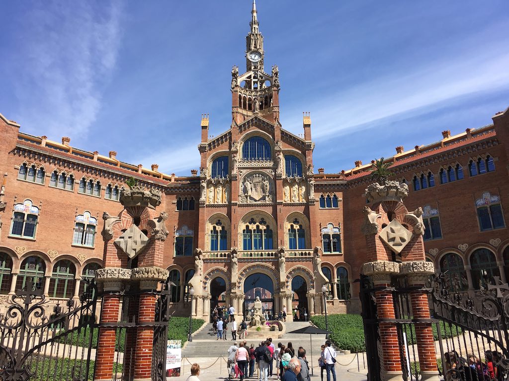 Speaking of his works, first of all, there is the “Museo de Catalunya” which we visited again last night and this morning as a guided tour. And the Hospital de Sant Pau, which we are going to visit. Strictly speaking, this area is called Sant Pau. It is basically a hospital, but it was conceived as a “city within a city” with this hospital as its center.