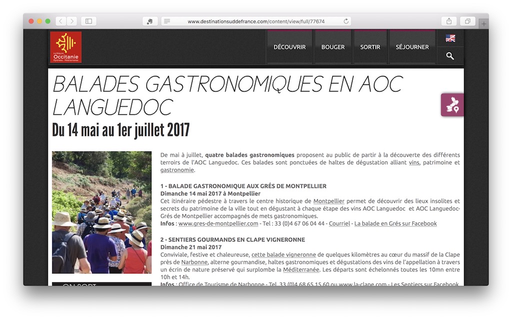 1 – BALADE GASTRONOMIQUE AUX GRÉS DE MONTPELLIER Dimanche 14 mai 2017 à Montpellier
