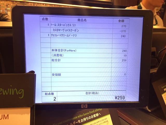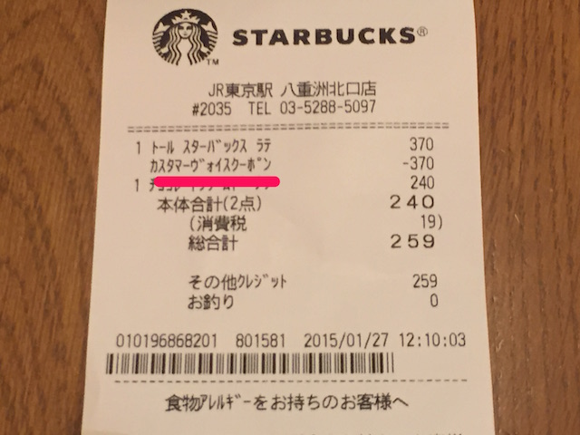 The other day at the nearest local station, I went into Starbucks in the morning, and I received this receipt.