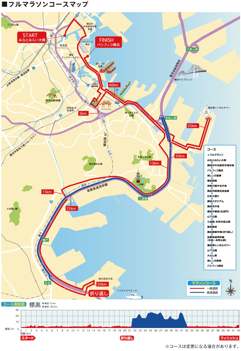 Also, the start and finish line are fixed in the Minato Mirai area, making it very easy to get to and from.
